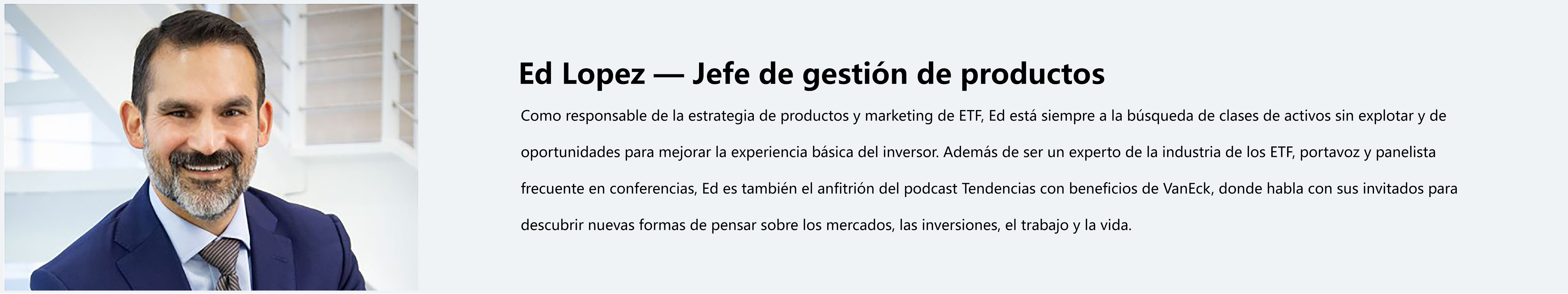 Parafraseando a Wayne Gretzky, VanEck se anticipa y va a donde va a estar el puck, no a donde está, señala Eric Fine, Portfolio Manager. “Eso no se enseña. Ya sea el oro en los 70, los ETFs en los 90 o las criptomonedas hoy, es parte de la esencia de VanEck”.