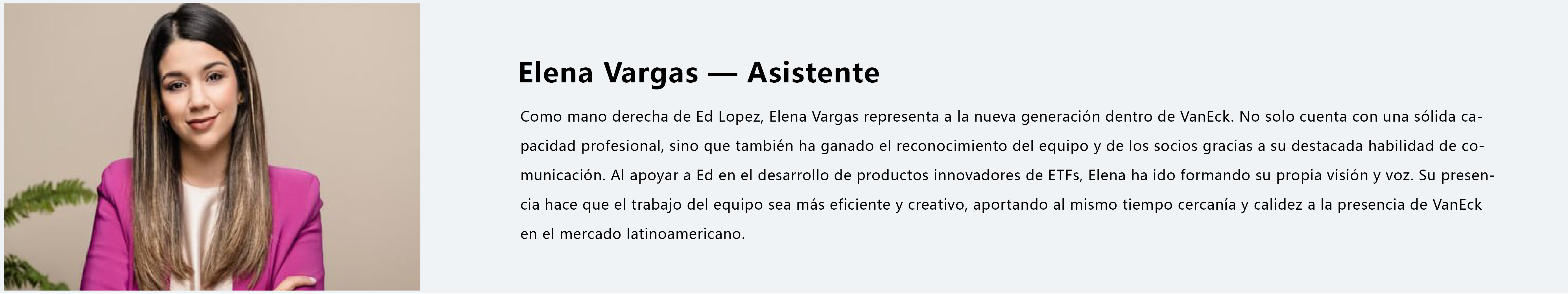 "Laura Martinez, hoy VP Associate General Counsel, se incorporó en 2008 como la empleada número 99. En su entrevista, en lugar de hablar de derecho, conversó sobre películas y hobbies con el entonces General Counsel. “Fue la entrevista más atípica de mi carrera… y marcó la pauta. VanEck siempre se ha sentido más como una familia que como una empresa”.